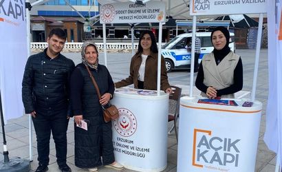 Erzurum Valiliği Açık Kapı Şube Müdürlüğü, halkın yoğun bulunduğu alanlarda stant kurarak Açık Kapı Projesinin işleyişi ile Kadına Yönelik Şiddetle Mücadele konularında bilgilendirme çalışmalarını sürdürüyor.