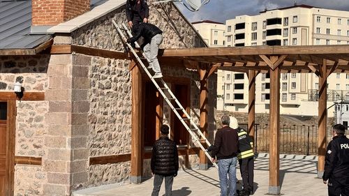 Erzurum'da Çatıda Mahsur Kalan Genç İtfaiye Tarafından Kurtarıldı