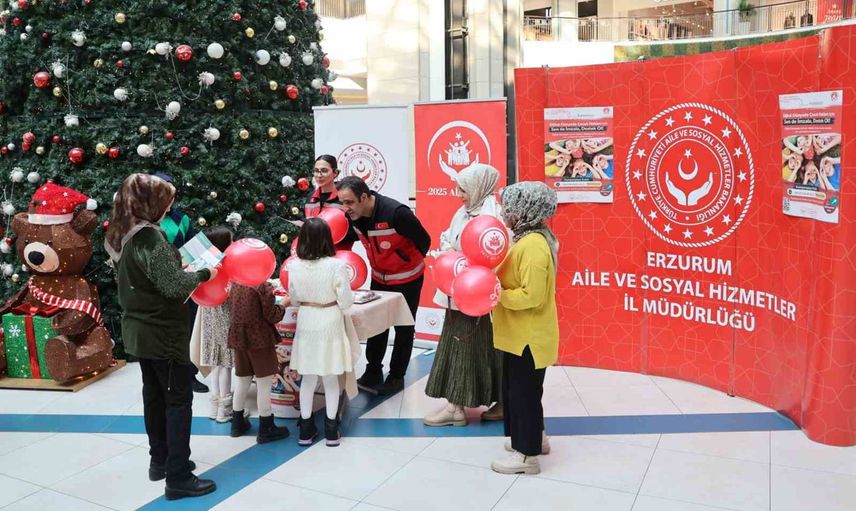 Erzurum'da Aile ve Sosyal Hizmetler İl Müdürlüğü tarafından yürütülen 'Dijital Dünyada Çocuk Hakları' temalı imza kampanyası kapsamında kamuoyu farkındalığı ve bilgilendirme amacıyla stantlar kuruldu.