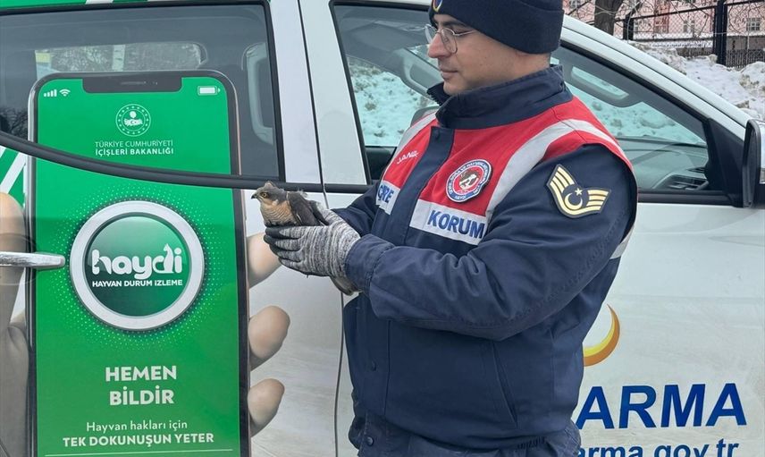 Erzurum'un merkez Yakutiye ilçesine bağlı Dumlu Mahallesi'nde, 19 Şubat'ta jandarma ekipleri, arazide bitkin bir atmaca buldu.