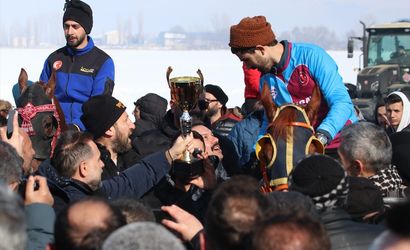 Erzurum'da 12 atın katılımıyla kar üstünde davullu-zurnalı "mahalli at yarışı" yapıldı. Organizasyon Türkiye Geleneksel Spor Dalları Federasyonu tarafından Yakutiye ilçesindeki bir arazide gerçekleştirildi.