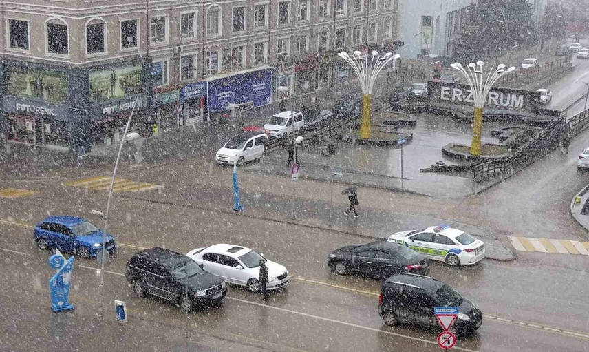 Erzurum'da sabah saatlerinde önce yüksek kesimlerde etkili olmaya başlayan kar yağışı, kısa sürede kent merkezine ulaştı. Vatandaşlar güne lapa lapa yağan karla başladı.