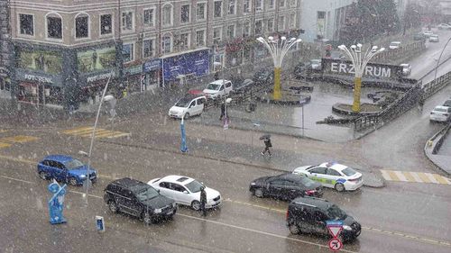 Erzurum'da sabah yüksek kesimlerden kent merkezine ulaşan kar etkili oldu; Meteoroloji parçalı ve çok bulutlu hava, uzmanlar çığ tehlikesi uyarısı yaptı.