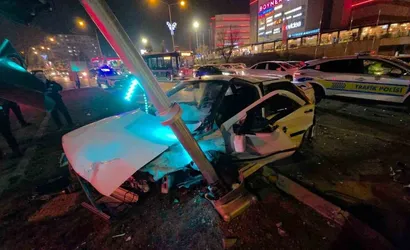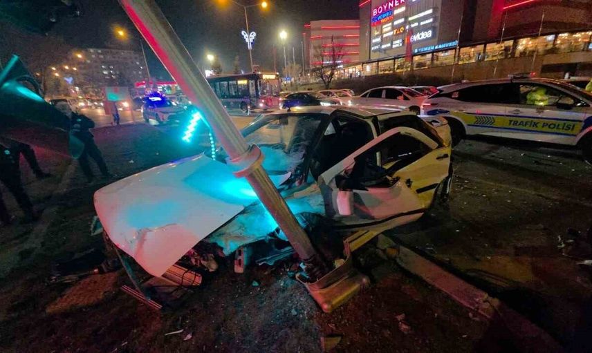 ERZURUM’DA POLİS KONTROL NOKTASINDAN KAÇAN BİR SÜRÜCÜ, ÖNCE KAVŞAKTA BAŞKA BİR ARACA DAHA SONRA DA AYDINLATMA DİREĞİNE ÇARPTI.