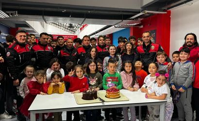 Erzurum'da bir okulda kavga çıktığı yönündeki ihbar üzerine adrese giden polis ekipleri, öğrencilerin sürpriz kutlamasıyla duygulandı. Okulda kendileri için hazırlanan pastaları kesip öğrencilerle hatıra fotoğrafı çektiren polisler, öğretmen ve öğrencilerin alkışlarıyla uğurlandı.