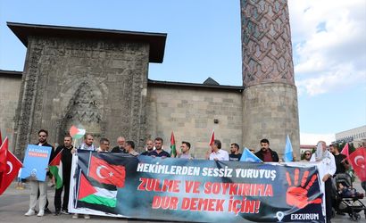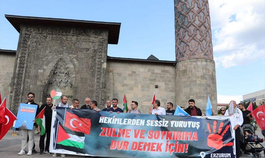 Erzurum'da hekimler ve sağlık çalışanları, Kurban Bayramı'nda İsrail'in Gazze'ye yönelik saldırılarını protesto etmek ve bu konuda dikkat çekmek amacıyla yürüyüş düzenledi.
