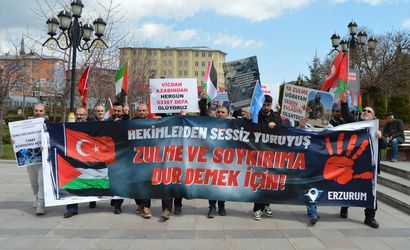 Erzurum'da hekim ve sağlıkçılar, İsrail'in Gazze'ye yönelik saldırılarını protesto etmek ve zulme dikkati çekmek amacıyla 75. haftada da yürüyüşlerini sürdürdü. Kent merkezindeki Lala Mustafa Paşa Cami önünde bir araya gelen aralarında doktor ve tıp fakültesi öğrencilerinin de bulunduğu sağlık çalışanları, Türk, Filistin ve Doğu Türkistan bayrakları eşliğinde, taşıdıkları döviz ve pankartlarla Yakutiye Medresesi'ne kadar yürüdü.