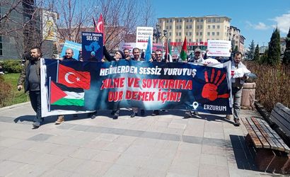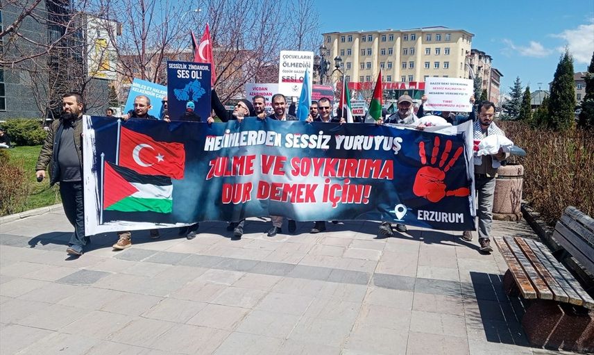 Erzurum'da hekim ve sağlıkçılar, İsrail'in Gazze'ye yönelik saldırılarını protesto etmek ve zulme dikkati çekmek amacıyla 76. haftada da yürüyüşlerini sürdürdü.