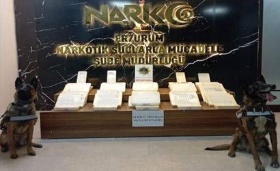 Erzurum'da tekstil çuvallarına gizlenmiş 54 kilo 300 gram sentetik uyuşturucu ele geçirildi