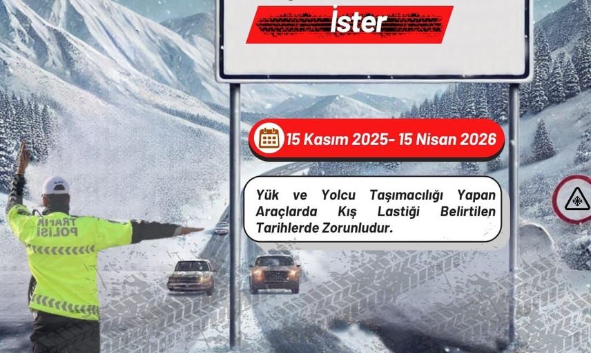 Erzurum Emniyet Müdürlüğü, sürücüleri kış koşullarına hazırlıklı olmaya davet ederek "Erzurum’un kışı, kış lastiği ister" sloganını paylaştı. Kurumun açıklamasında ayrıca "15 Kasım 2025 - 15 Nisan 2026 tarihleri arasında yolcu ve yük taşıyan araçlarda kış lastiği belirtilen tarihlerde zorunludur" ifadesi yer aldı.
