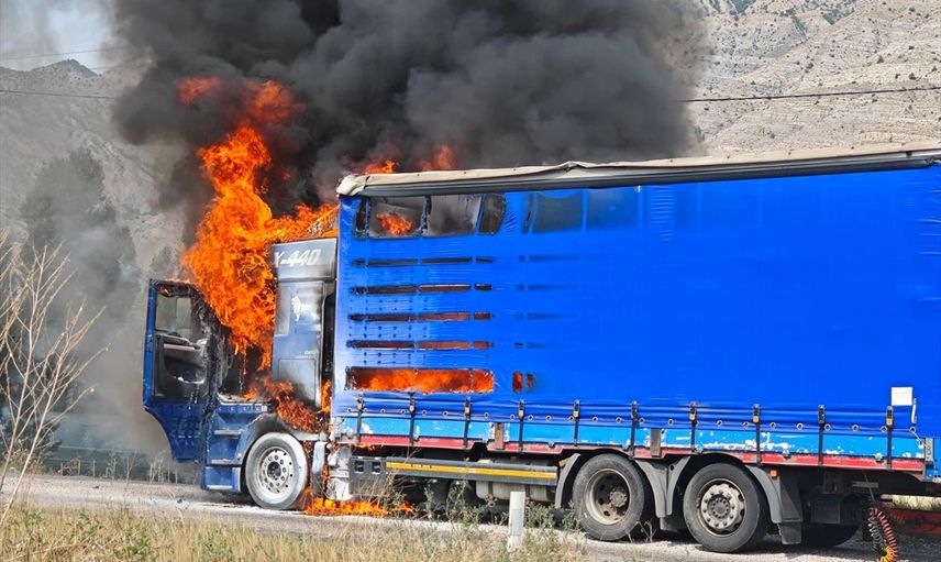 Erzurum'un Uzundere ilçesinde tırda çıkan yangın, itfaiye ekiplerince söndürüldü.