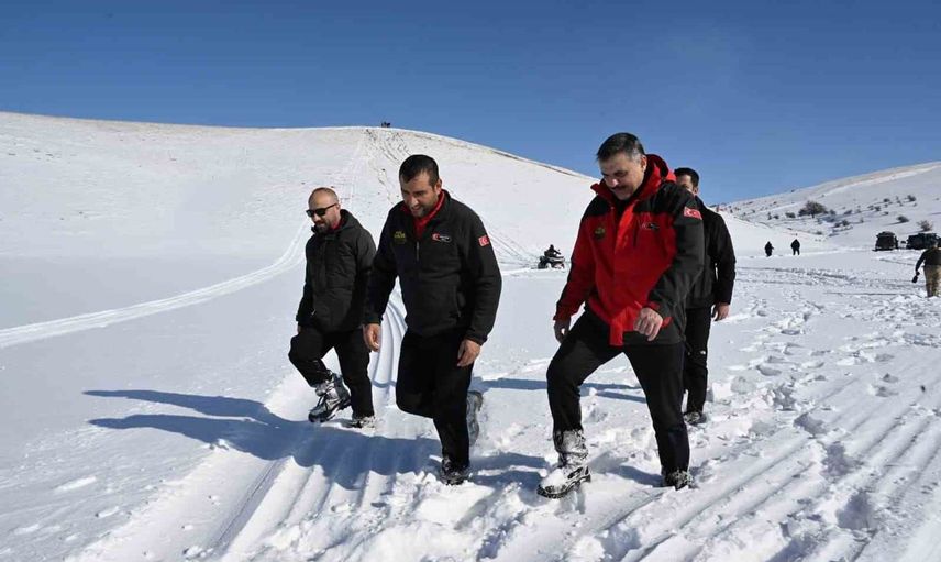 Erzurum Valisi Mustafa Çiftçi, Macera Off‑road Arama, Kurtarma ve Doğa Sporları Kulübü üyeleriyle birlikte Aziziye ilçesi Söğütlü Kırsal Mahallesi'nde yaban hayvanları için yemleme faaliyetinde bulundu, ardından karlı arazide ve donmuş gölette bot raftingi gerçekleştirdi.