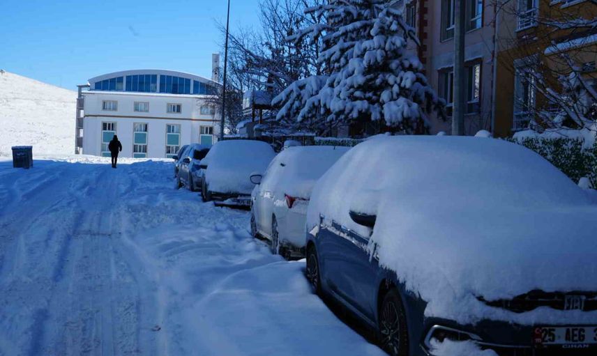 Erzurum, dünden bu yana devam eden kar yağışının ardından kent merkezi ve çevresinde yoğun bir beyaz örtü ile uyandı. Sabah yapılan gözlemlere göre şehirde yaklaşık 30 santimi geçen kar birikti. Yoğun kar nedeniyle araç sürücüleri sabahın erken saatlerinde araçlarının üzerindeki karı temizlemekte zorlandı.