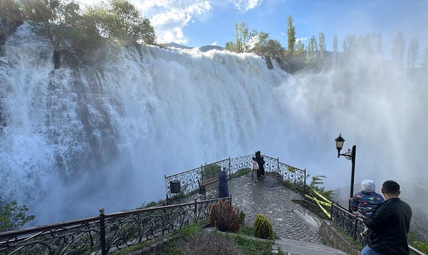 Erzurum'da bulunan ve UNESCO Dünya Mirası Listesi'ne aday gösterilen Tortum Şelalesi, karların erimesi ve ilkbahardaki sağanak yağışlar nedeniyle coşkulu bir görünüm sergiliyor.