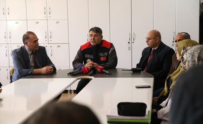 Erzurum İl Emniyet Müdürü Onur Karaburun, okul çevresi denetimleri kapsamında Palandöken ilçesindeki Yıldızkent Borsa İstanbul Anadolu Lisesi'ni ziyaret ederek öğretmen ve öğrencilerle bir araya geldi.