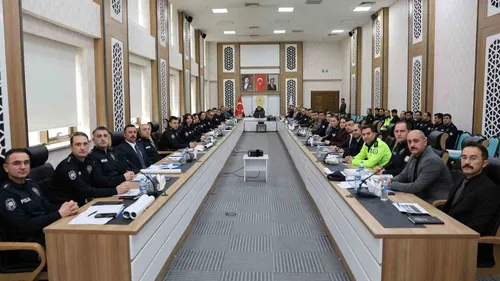 Erzurum Emniyet Müdürü Onur Karaburun başkanlığında düzenlenen toplantıda 2026 yılı ilk üç aylık güvenlik, asayiş ve trafik faaliyetleri değerlendirildi.
