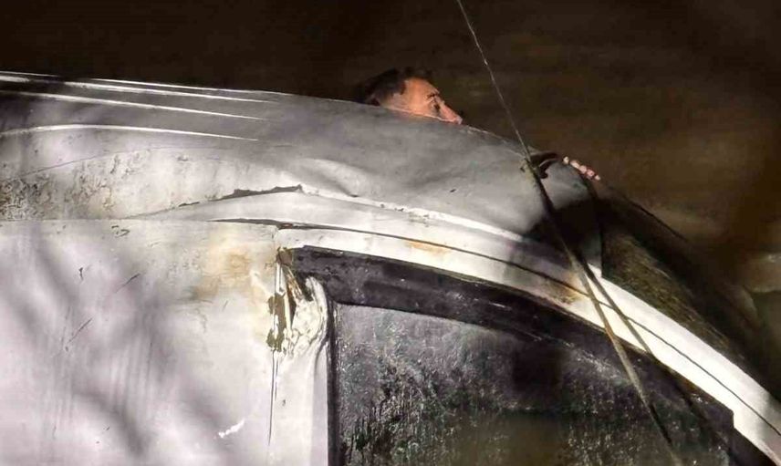 Erzurum Köprüköy'de Aras Nehri'ne yuvarlanan araçta mahsur kalan sürücü halatlı operasyonla kurtarıldı