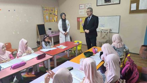 Erzurum İl Müftüsü Yaşar Çapçı, Hacı Osman Efendi Camii 4-6 Yaş Kur'an Kursu'nu ziyaret ederek çocuklarla buluştu, eğitim ve fiziki koşulları yerinde inceledi.