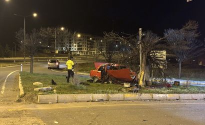 Erzurum'un Oltu ilçesinde refüje çıkarak ağaca çarpan otomobildeki 4 kişi yaralandı.