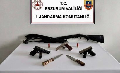Erzurum Tekman'da jandarma operasyonu: İki kişi ve çok sayıda ruhsatsız silah ele geçirildi
