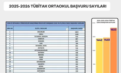 Erzurum, TÜBİTAK 2204/B Ortaokul Öğrencileri Araştırma Projeleri Yarışması kapsamında bin 823 proje ile Türkiye birincisi oldu.