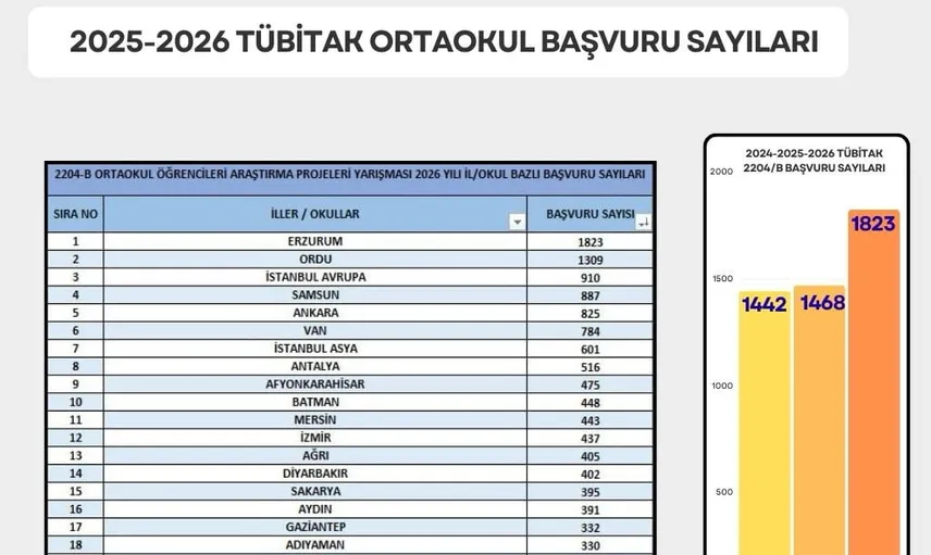 Erzurum, TÜBİTAK 2204/B Yarışmasında Türkiye birincisi — bin 823 projeyle zirvede