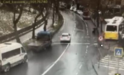 Olay anına ilişkin ortaya çıkan güvenlik kamerası görüntüleri kazanın seyrini belgeledi. Görüntülerde otobüsün hızla otoparka girdiği, kaldırımda yürüyen bir kişinin ise aracın altına kalmaktan son anda kurtulduğu görülüyor.