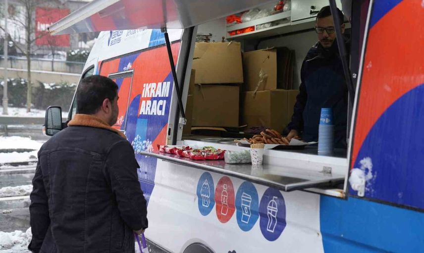 İstanbul’da etkili olan kar yağışı nedeniyle Esenler Belediyesi, trafikte beklemek zorunda kalan vatandaşlara sıcak ve soğuk ikramlar sundu.