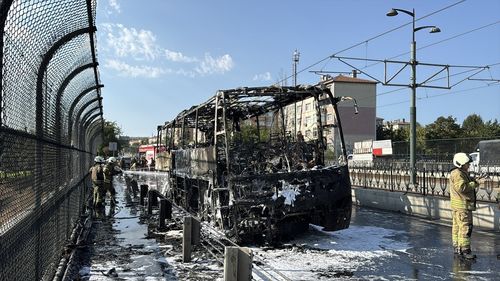 Esenler'de Eski Edirne Asfaltı üst geçidinde seyir halindeki 34 LEL 534 plakalı servis minibüsü motor yangını sonucu kullanılamaz hale geldi; itfaiye söndürdü, tramvay seferleri aksadı.