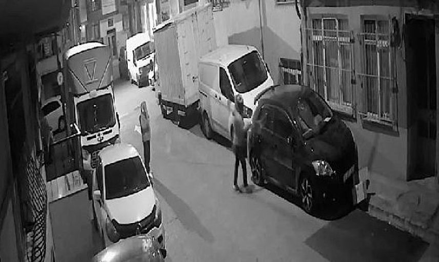 Esenler’de park halindeki bir otomobil, kasklı ve kapüşonlu iki şüphelinin saldırısına uğradı. Şüphelilerden biri, otomobilin camlarını levye ile kırarken, diğeri ise olayı cep telefonu ile kaydetti. Olay anı, güvenlik kamerasına yansıdı.