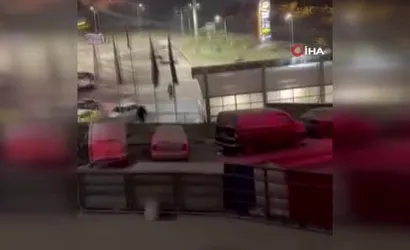 Ayrıca, olay anında bir kadının başka bir araçtan inip korkuyla koşarak uzaklaştığı kaydedildi. Meydana gelen anlar, çevredeki bir vatandaşın cep telefonu kamerasına yansıdı ve görüntülerde saldırının ayrıntıları yer aldı.