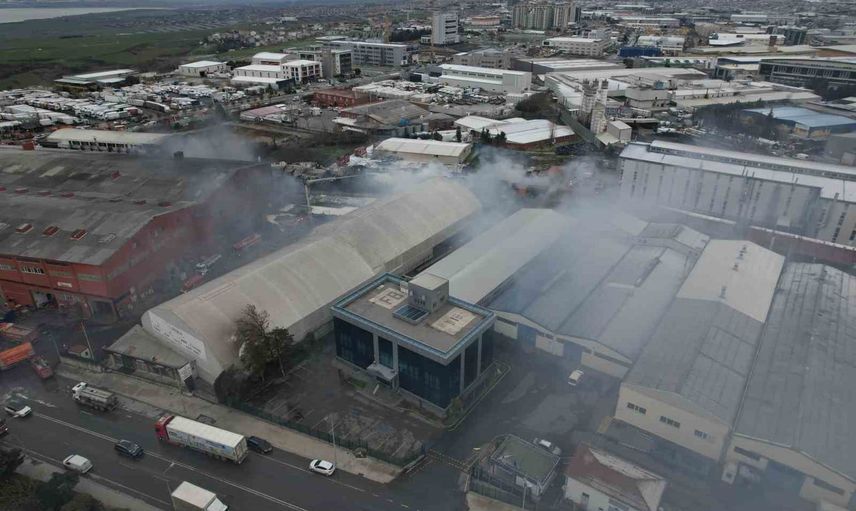 Esenyurt Osmangazi Hadımköy Yolu Caddesi'nde bulunan bir hırdavat fabrikasında gece saatlerinde başlayan yangın, gündüz saatlerinde de devam ediyor. Olay, bölgedeki yerleşim ve ulaşım üzerinde etkili olurken, ekiplerin müdahalesi havadan kaydedildi.