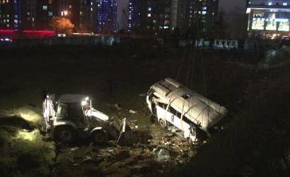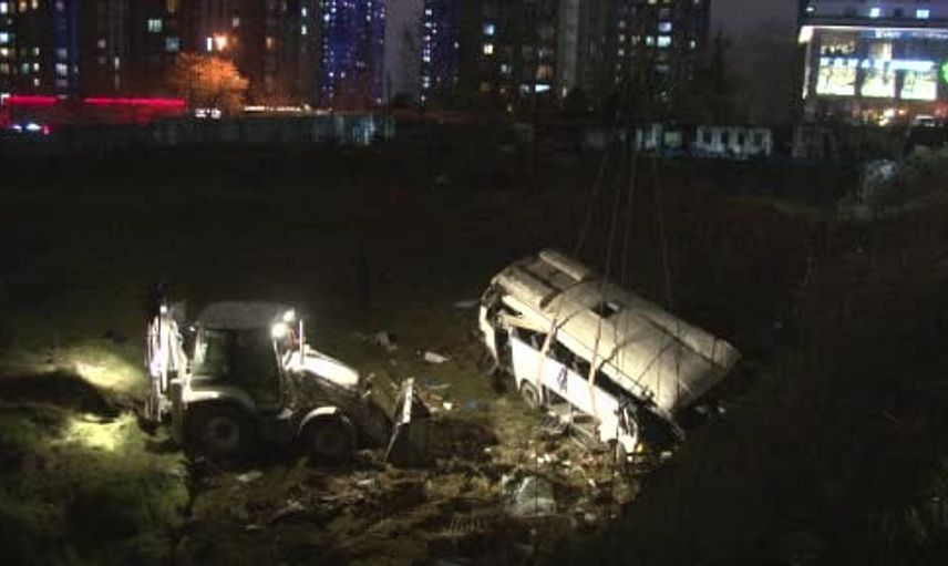 ESENYURT'TA KONTROLDEN ÇIKARAK ŞARAMPOLE YUVARLANAN VE 4 KİŞİNİN ÖLÜMÜYLE SONUÇLANAN KAZAYA KARIŞAN SERVİS MİNİBÜSÜ OLAY YERİNDEN KALDIRILDI.
