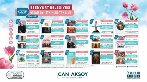 Esenyurt Belediyesi, Can Aksoy öncülüğünde Nisan ayında her yaşa yönelik ücretsiz söyleşi, tiyatro, konser ve çocuk etkinlikleri düzenliyor.