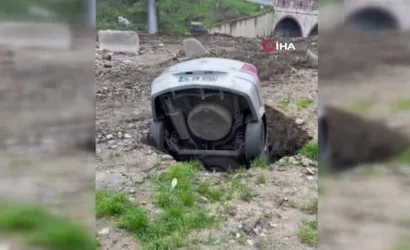 Aracın çukura düştüğü anlar, çevredeki bir vatandaşın cep telefonu kamerasına yansıdı. Görüntüler araç ile çukur arasındaki hızlı çöküşü kaydediyor.