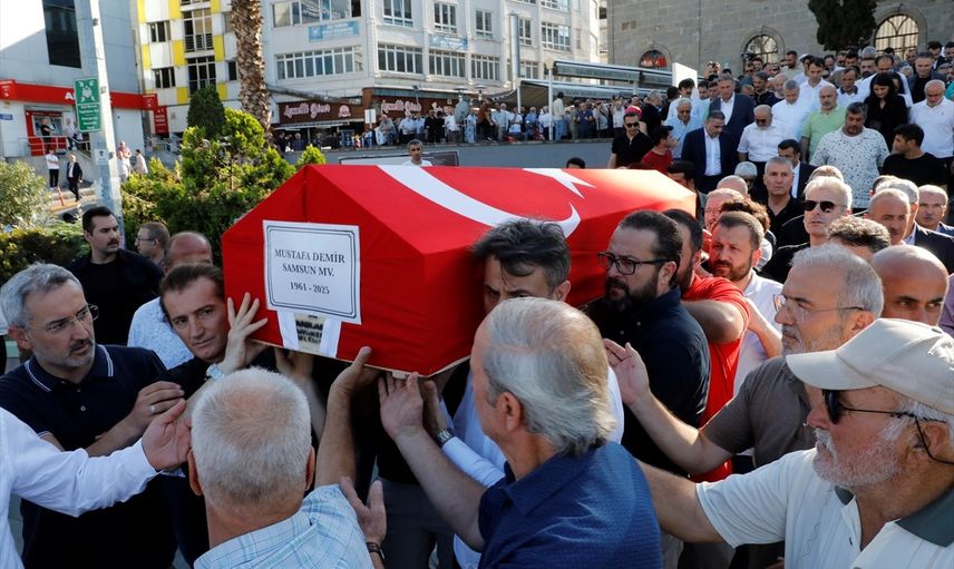 Ankara'da tedavi gördüğü hastanede 64 yaşında vefat eden eski Bayındırlık ve İskan Bakanı ve eski Samsun Büyükşehir Belediye Başkanı Mustafa Demir için Samsun'da cenaze töreni düzenlendi. Cenaze törenine Ulaştırma ve Altyapı Bakanı Abdulkadir Uraloğlu (sol3), AK Parti Genel Başkan Yardımcısı Mustafa Demir (sol2), AK Parti Samsun Milletvekili Yusuf Ziya Yılmaz (solda) ile Ordu Büyükşehir Belediye Başkanı Hilmi Güler (sağ2) de katıldı.