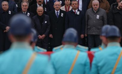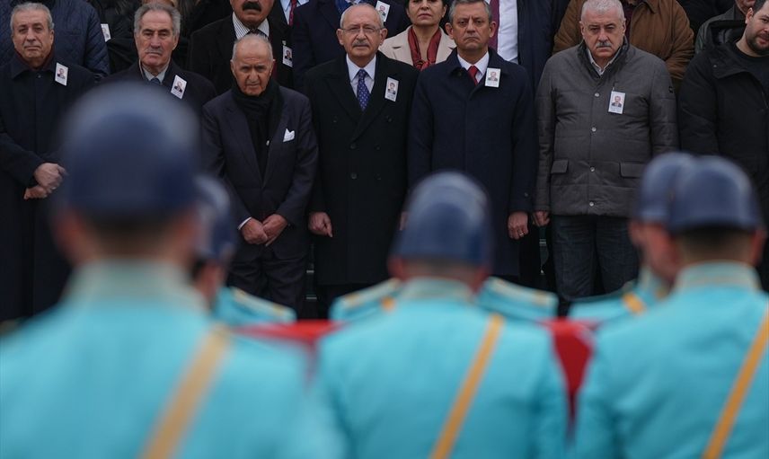 Hayatını kaybeden 19. Dönem CHP Gaziantep Milletvekili Mustafa Doğan için Meclis'te cenaze töreni düzenlendi. Törene, CHP Genel Başkanı Özgür Özel (sol 2) ve eski CHP Genel Başkanı Kemal Kılıçdaroğlu (sağ 2) da katıldı.