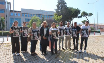 İzmir'in Ödemiş ilçesinde eski kız arkadaşı Fatma Kara'yı öldüren ve cinayet öncesi Kara'yı tehdit edip hakaretlerde bulunduğu iddiasıyla yargılanan Olgun Gacar'a "tehdit" ve "hakaret" suçlarından 9 ay hapis cezası verildi. Duruşmanın ardından Kara ailesinin avukatı Aslı Ağar (sol 4), adliye önünde açıklama yaptı.