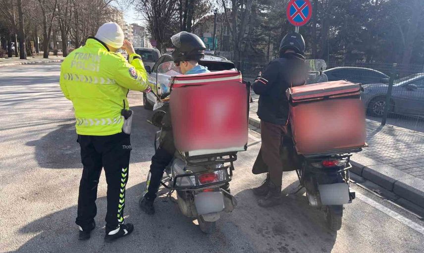 ESKİŞEHİR'DE POLİS EKİPLERİNCE 205 MOTOSİKLET VE MOTORLU BİSİKLET SÜRÜCÜSÜ DENETLENİRKEN, KURALLARI İHLAL ETTİĞİ VE BELGE EKSİKLİĞİ BULUNDUĞU BELİRLEN 50 KİŞİYE CEZA YAZILDI.