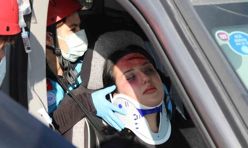 Senaryo gereği, kafa kafaya çarpışmış iki araç içindeki yaralılara müdahale edildi. Olay yerinde polisin güvenlik önlemi aldığı, itfaiyenin çıkmış yangını söndürdüğü ve AFAD ile itfaiye ekiplerinin araçta sıkışan yaralılara alan açtığı tasarlandı. Sıkışan yaralılar daha sonra UMKE ve İl Ambulans Servisi ekipleri tarafından çıkarılarak ilk müdahaleleri yapıldı ve ambulanslarla ilgili hastanelere sevk edildi.