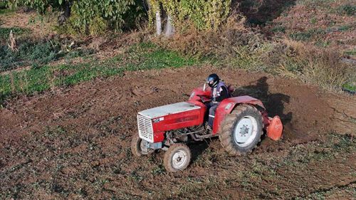 Eskişehir'de 67 yaşındaki çiftçi yeni yönetmeliğe uygun ekipmanla tarlasını sürdü
