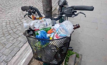 Eskişehir'de ağaca kilitli bisikletin sepeti çöp yığınına döndü