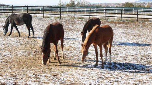 Yenel Kaya, Eskişehir Mahmudiye’de 90-100 atın kış bakımını, günlük dışarı çıkarma uygulamasını, yem tüketimini ve 25 gebe kısrağın takibini anlattı.