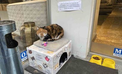 Eskişehir'de işletme önünde beslenen kedi için asılan not dikkat çekti