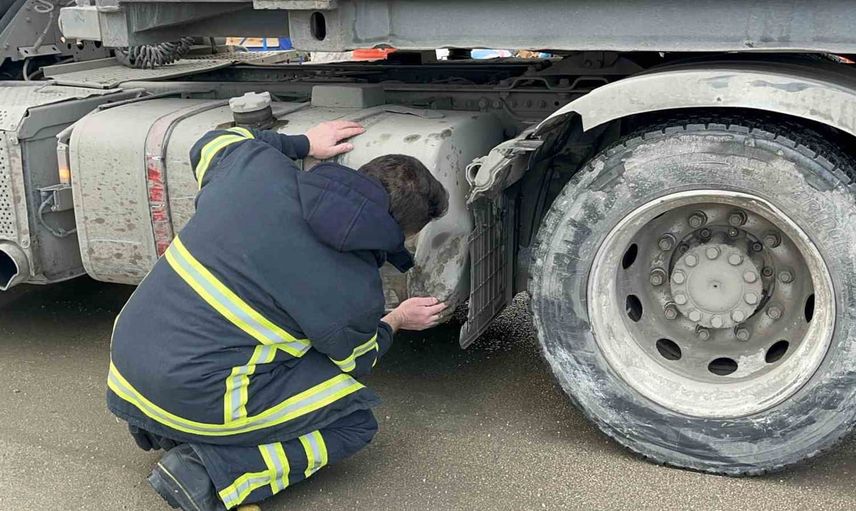 Eskişehir'de kaygan yolda otomobil park halindeki tıra çarptı; tırın deposu delindi