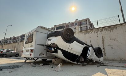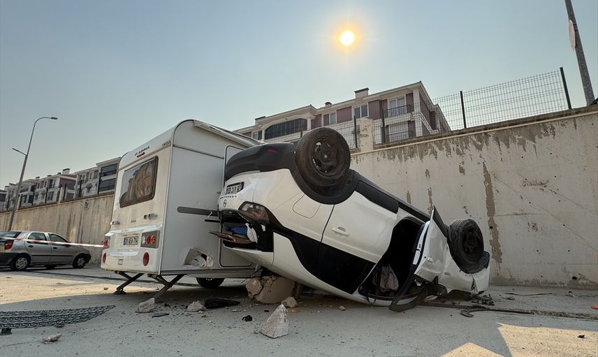 Otomobil, düştüğü noktada park halindeki bir karavana çarparak devrildi. Olayın ardından çevredekilerin ihbarı üzerine, polis ve 112 Acil Sağlık ekipleri hızla olay yerine intikal etti.