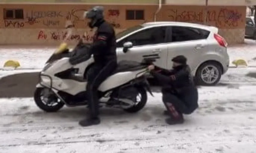 Kuryelerden birisi yavaş şekilde motosikleti kullanırken, diğeri ise araca arkadan tutunup buzlu zeminde kaydı. Cep telefonu kamerasıyla kaydedilen görüntülerde, zemin koşulları nedeniyle motosikletin de zaman zaman ilerlemekte güçlük çektiği görüldü.