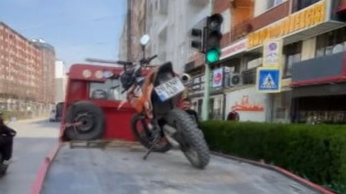 Eskişehir'de motosikletinin önünü kaldırarak sosyal medyada paylaşım yapan E.Ş.'ye 49 bin TL ceza kesildi, ehliyeti alındı, motosikleti trafikten men edildi.