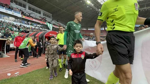 Eskişehir'de Prof. Dr. Fethi Heper Stadyumunda Polis Haftası kapsamında üniformalı minikler, Ankara Demirspor-Bursaspor maçında sahaya çıkarak ilgi odağı oldu.