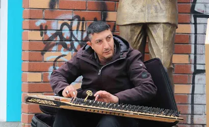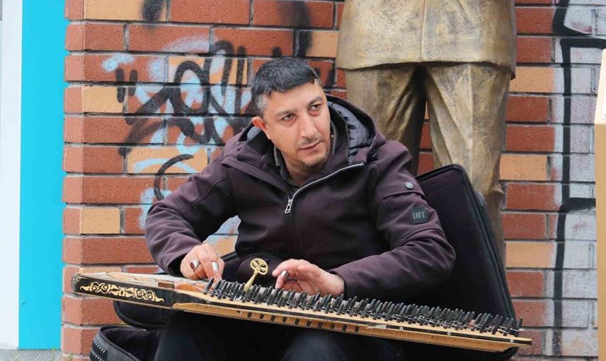 Eskişehir'de hava sıcaklıklarının kışla birlikte hissedilir derecede düşmesine rağmen sokaklarda sanat etkinlikleri devam ediyor. Kent merkezinde performans sergileyen bir sanatçı, kanun çalarak dışarıdan geçenleri müzikle buluşturdu.